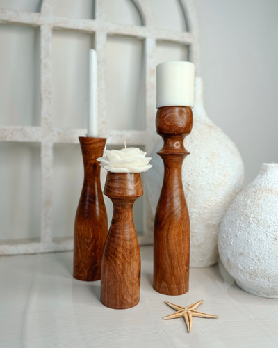 جاشمعی رومیزی 5 شعله چوب و برنجی