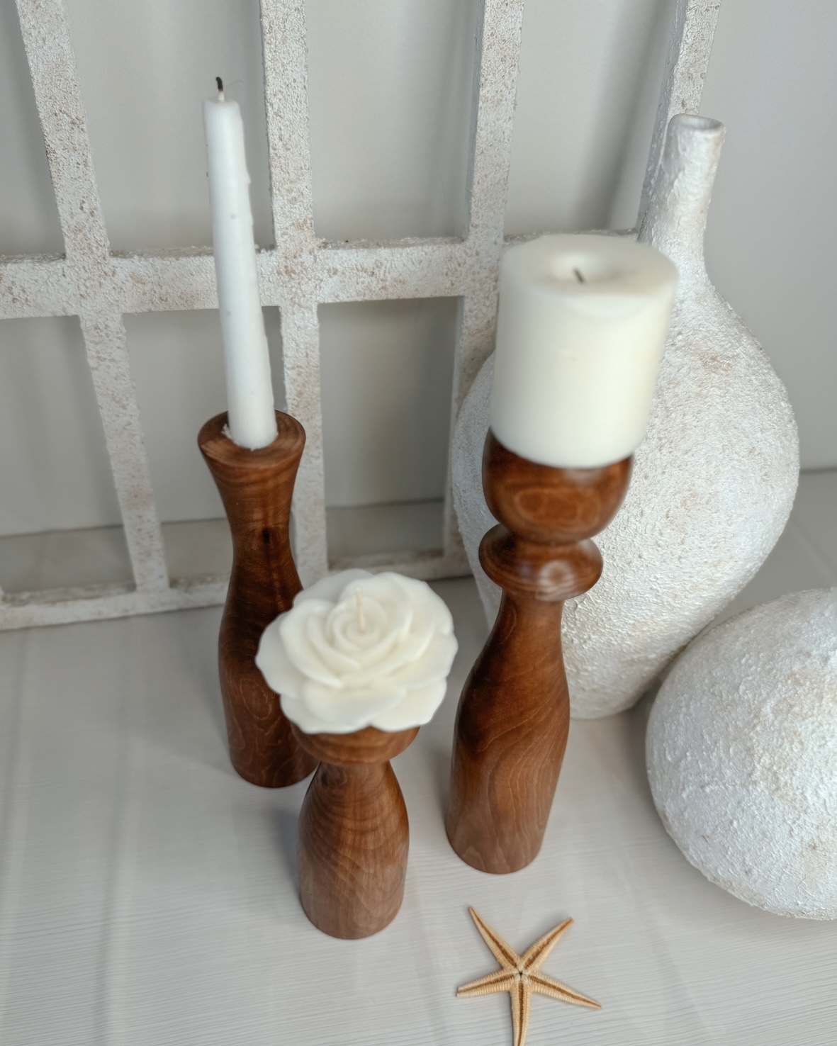 این ست سهسایزی، هم برای روشن کردن شمعهای مختلف کاربرد داره و هم بهتنهایی یه دکور شیک و ترند این روزهاست. وجود جاشمعی روی میز پذیرایی، کنار شلف یا حتی اتاق خواب، حس آرامش و زیبایی رو چند برابر میکنه.