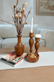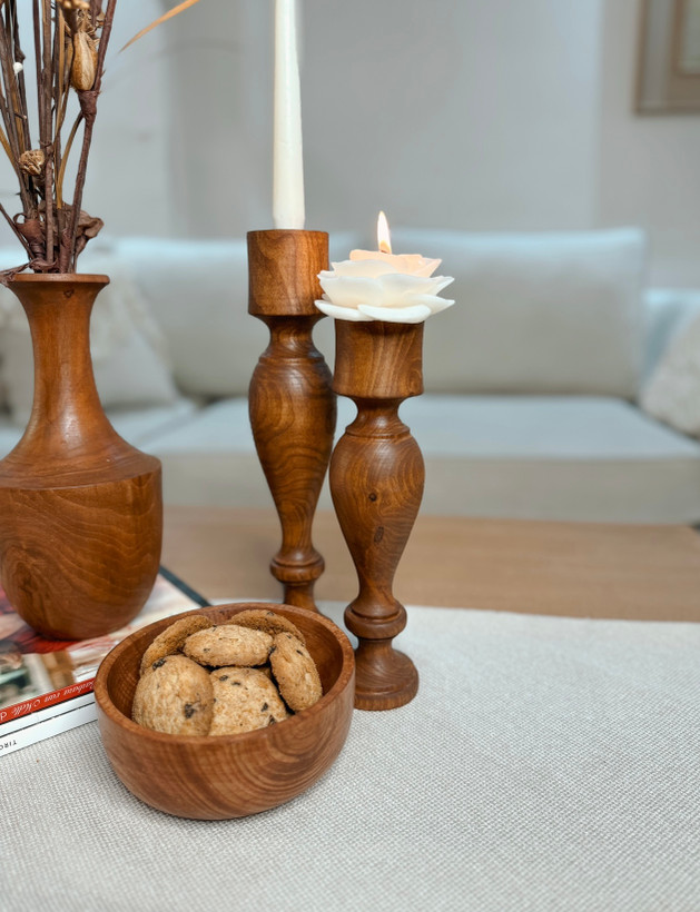 اگر دوست داری روی میز وسط مبیلیت یه دکوری شیک داشته باشی که تنقلات هم سرو بشه این ست عالیه ست مینا تشکیل شده از دو عدد جاشمعی به ارتفاع های ۲۵/۳۰سانت و یک گلدان به ارتفاع ۲۵سانتیمتر و یک پیاله قطر تقریبی ۱۲سانتیمتر مناسب خشکبار،شکلات و ...