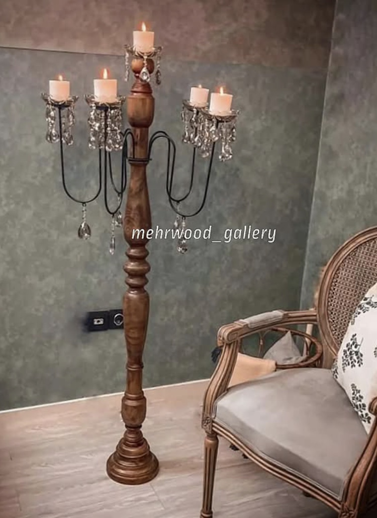 شمعدان چوب و برنج